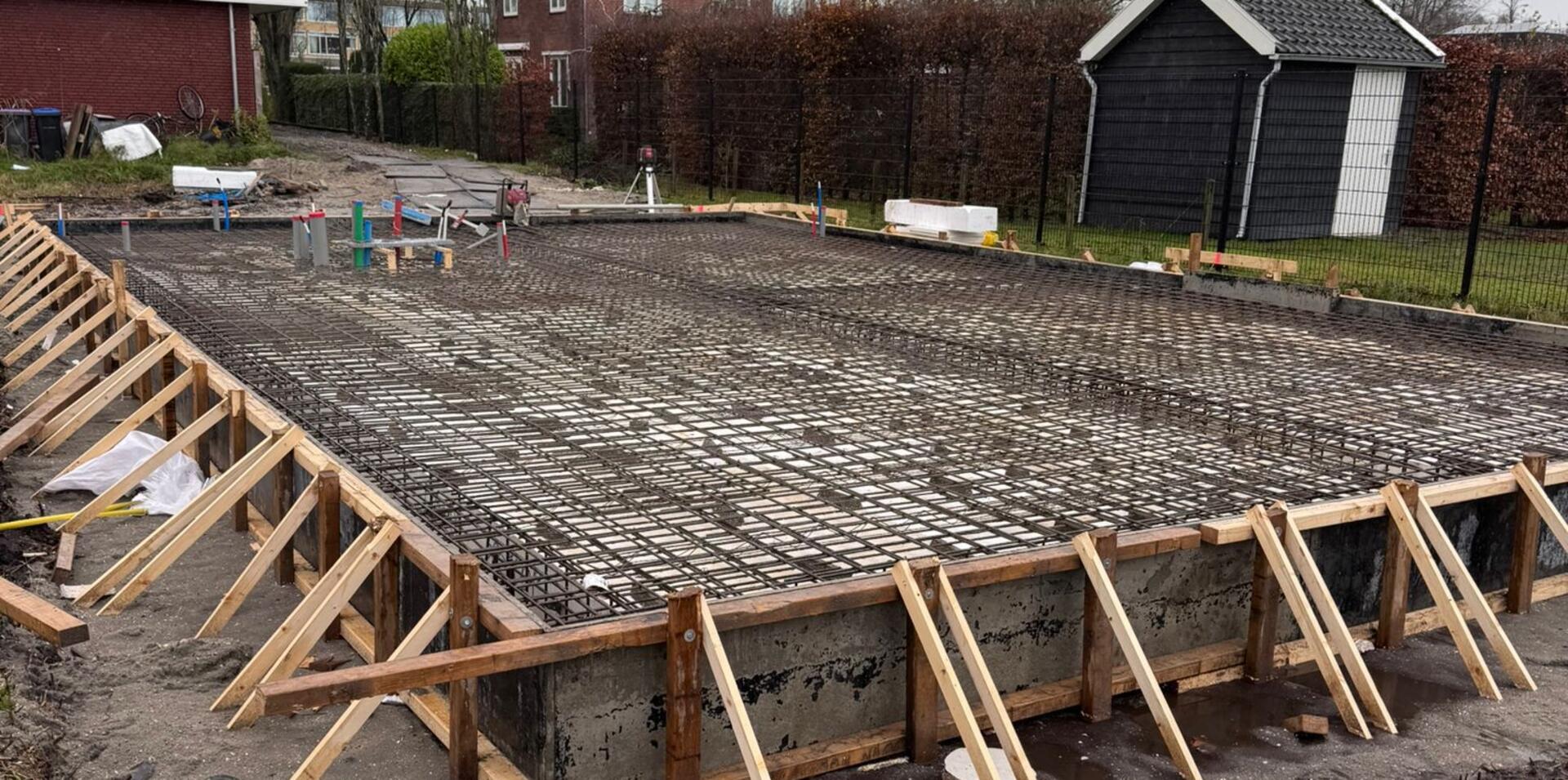 In Boskoop hebben we het grondwerk, de stalen buispalen en de vloer gerealiseerd voor een nieuwe woning.
