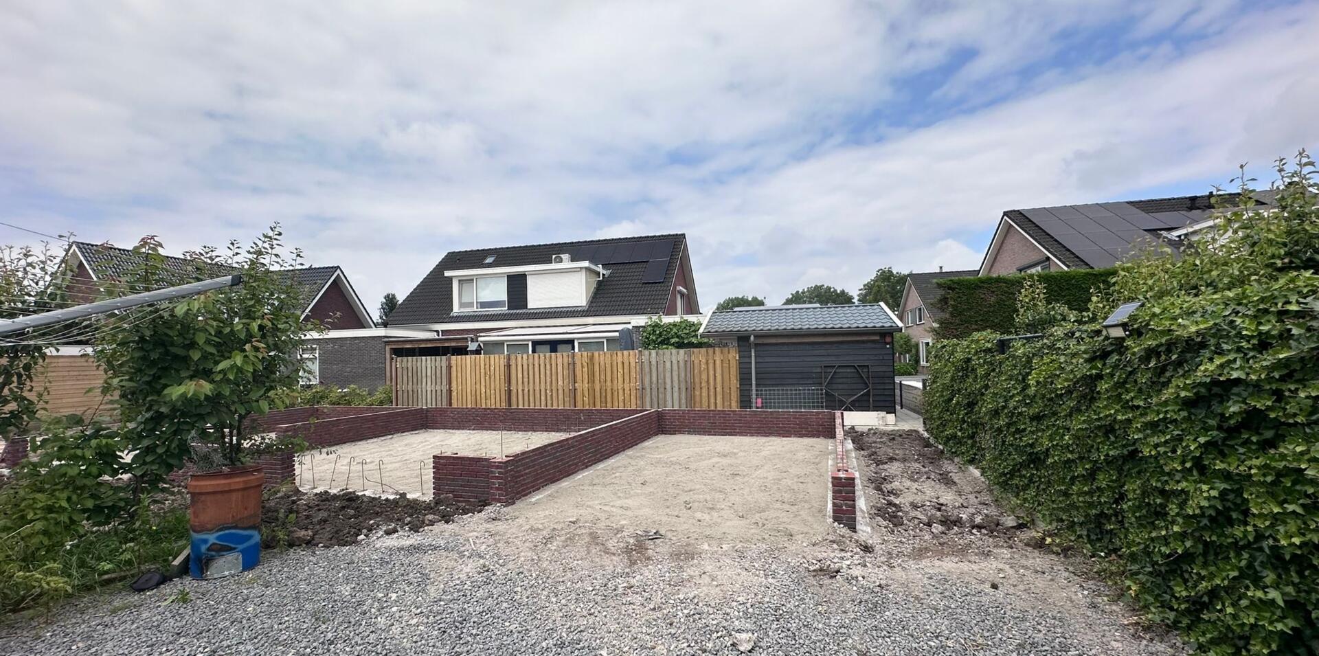 Voor een bijgebouw in de Betuwe hebben we de heipalen, het grondwerk, de fundering en het metselwerk verzorgd. Later is ook de vloer aangebracht.