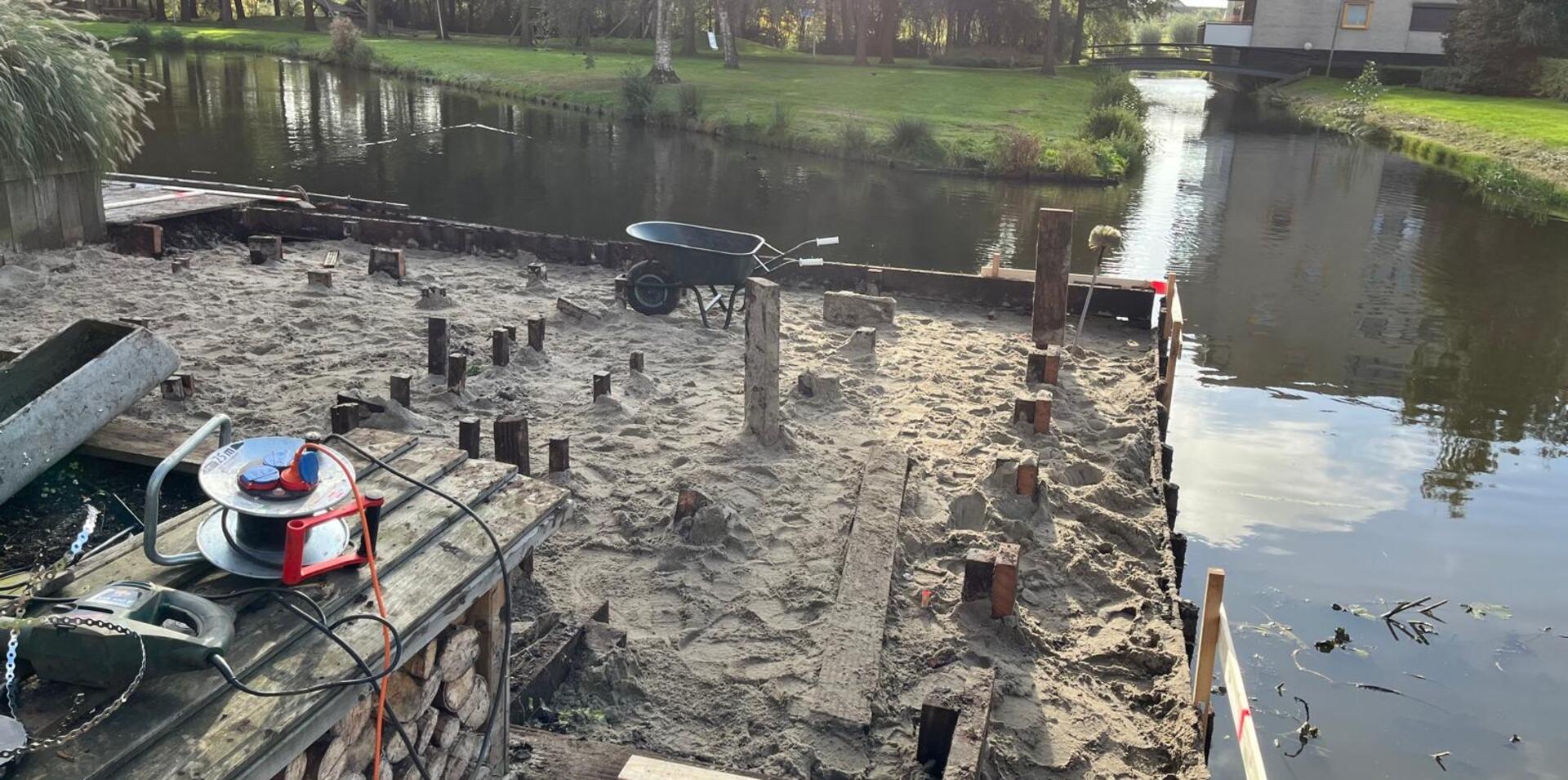 Voor een prachtig bijgebouw met overkapping aan de waterkant hebben we een nieuwe vloer op stalen buispalen gerealiseerd.